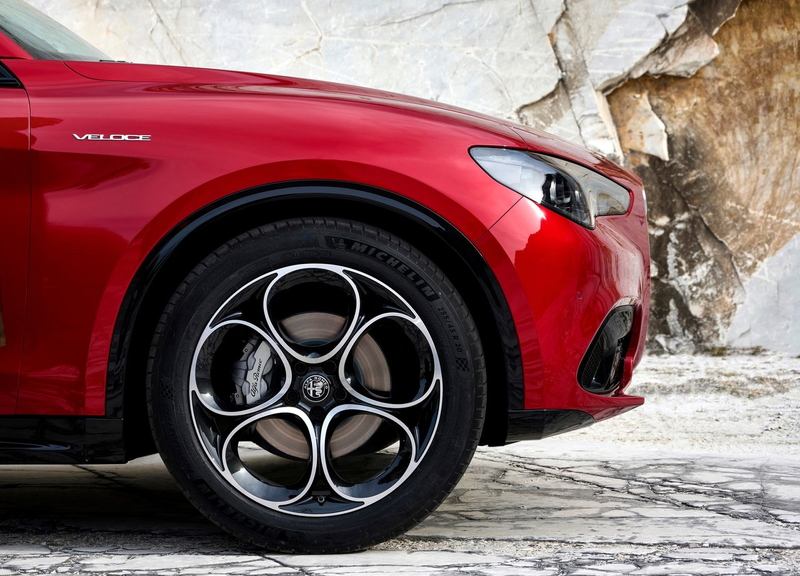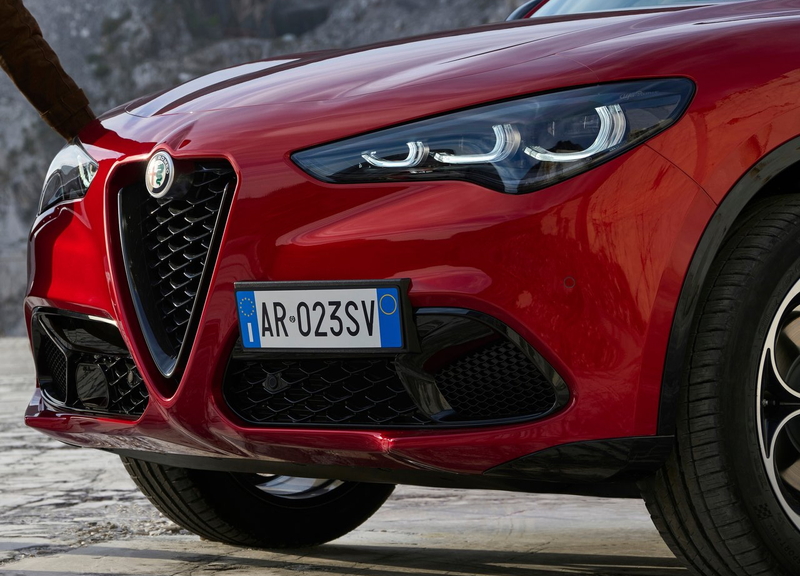- 「Stelvio」ロゴや「Quadrifoglio」バッジなど、グレードごとの個性も際立つ。