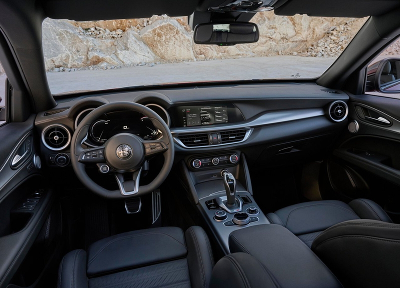 - アルファロメオらしいスポーツカーの雰囲気をSUVに取り込んでおり、低めの着座姿勢と包み込むような造形が特徴。