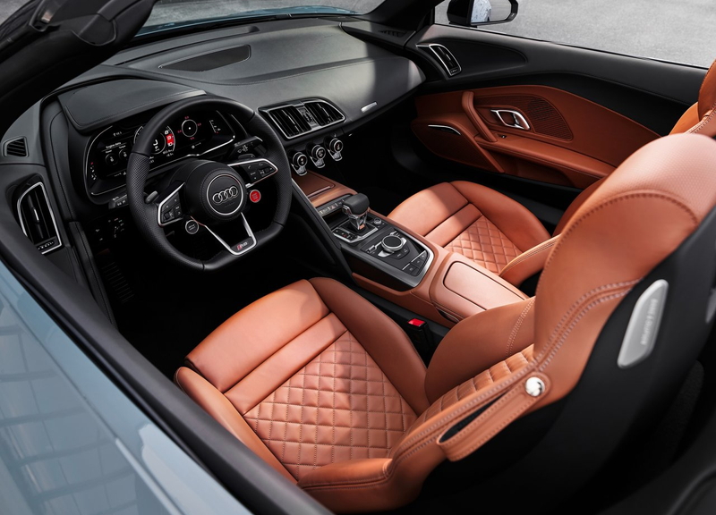 アウディR8のインテリアは、スーパーカーらしいスポーティーさと、アウディが得意とするラグジュアリー性を兼ね備えています。ドライバー中心のコックピット設計により、運転に集中できる環境が整っています。