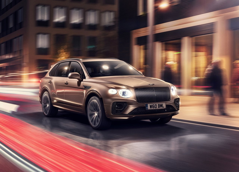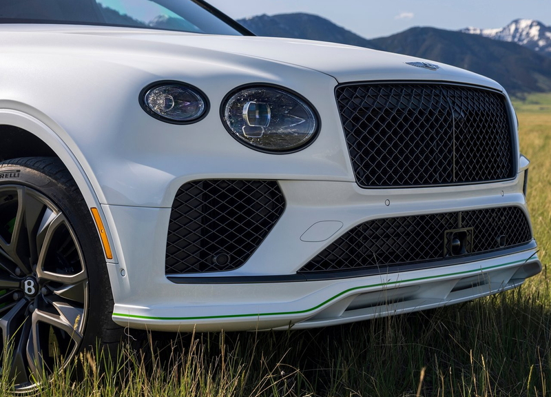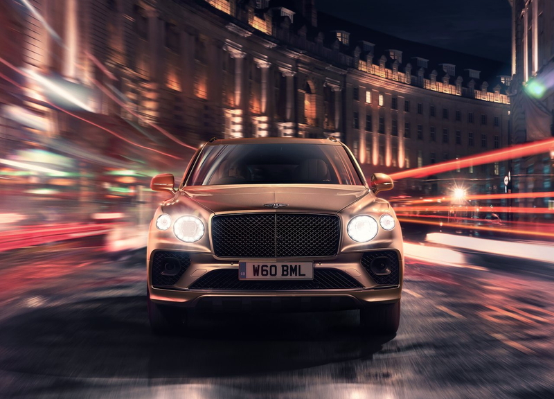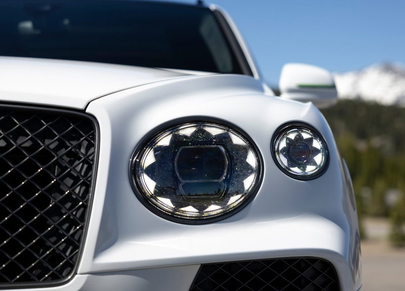- クリスタルカット風のLEDヘッドライトは宝石のように輝き、ベントレーらしい高級感を強調。