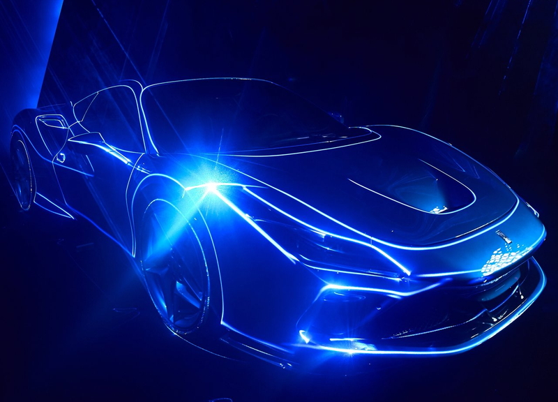 • シルエットはクラシックなミドシップフェラーリを連想させるもので、488GTBよりもシャープで躍動的。