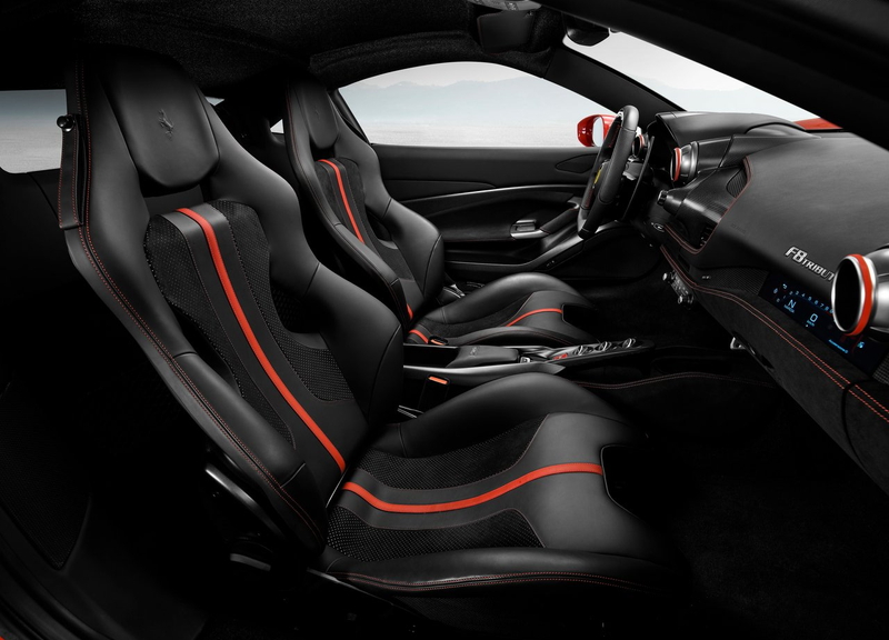 フェラーリ F8 のインテリアは、走りに集中できるレーシーな雰囲気と、ラグジュアリーな仕上げを兼ね備えています。ドライバーが主役となる“ドライバー・オリエンテッド”な設計が徹底されており、フェラーリならではの緊張感と快適性が融合しています。