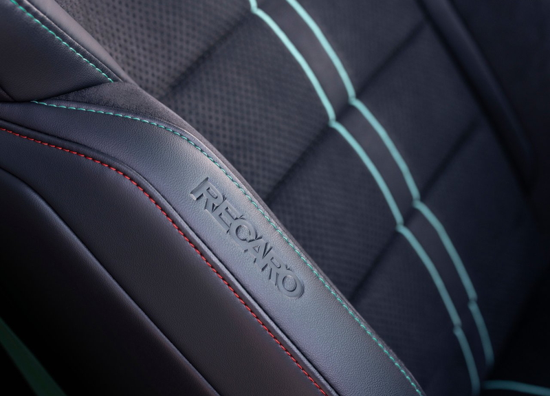 フラットボトムステアリング、スポーツシート、カーボン加飾など、走りを意識した室内空間を演出。