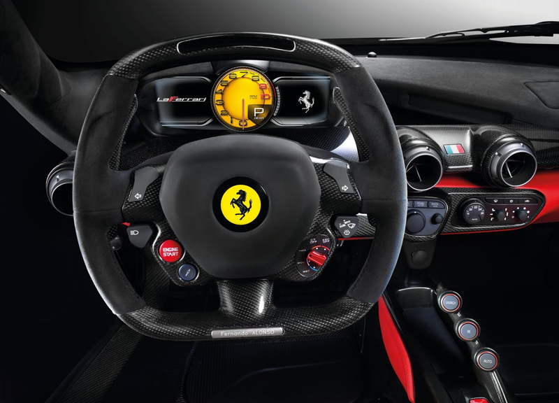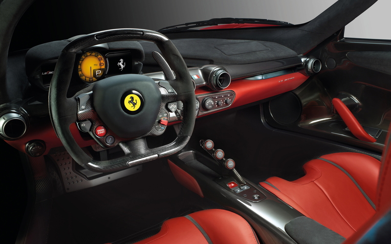 ラ・フェラーリのインテリアは、ラグジュアリーカーというよりF1マシンに限りなく近いドライバーズコクピットです。快適性よりも「いかに速く、正確に走るか」を最優先に設計されています。