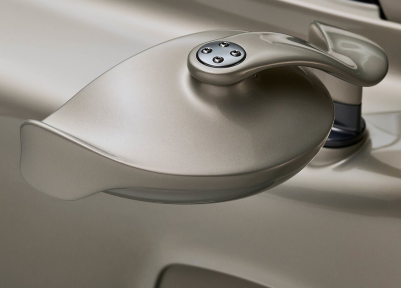 上に大きく開くバタフライ式のドアは、乗降性の良さだけでなくデザインアイコンとしての役割も持ちます。 - サイドミラー形状