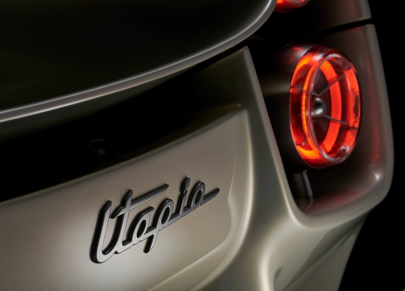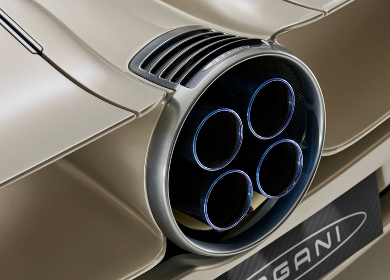 ユートピアの後ろ姿は、パガーニ伝統のディテールが新解釈で表現されています: