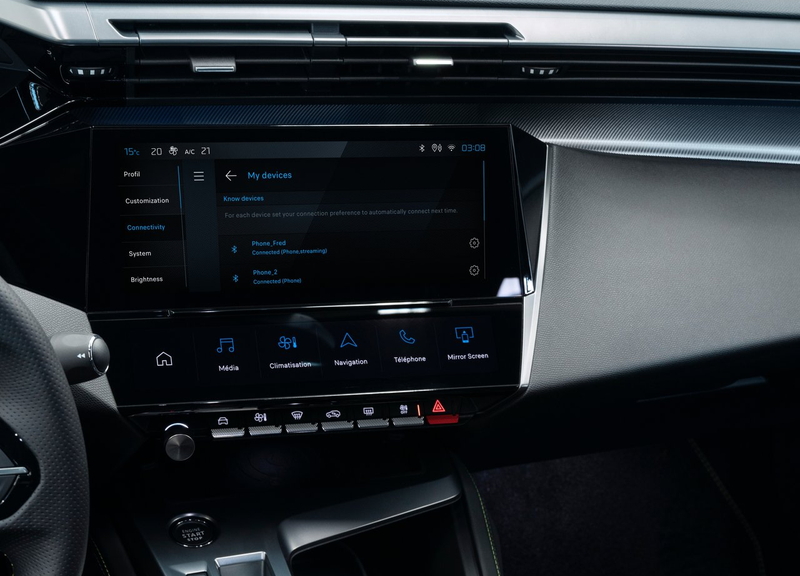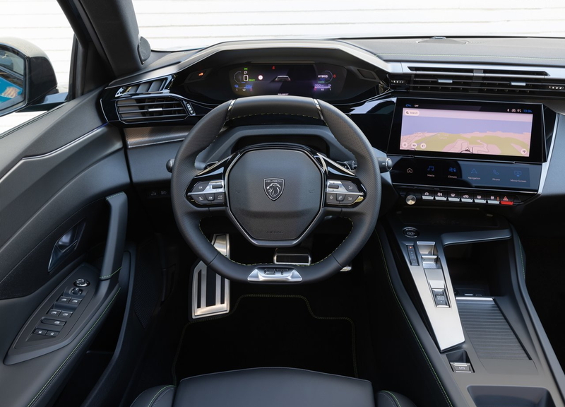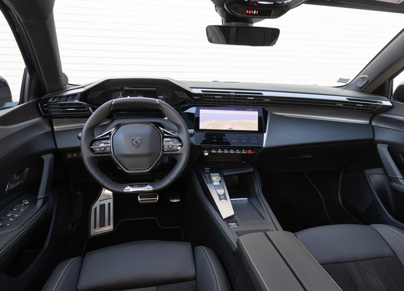 408のインテリアは、プジョー独自の「i-Cockpit®」を軸に構成されています。小径ステアリング、デジタルメーター、そしてドライバーを包み込むような設計により、近未来的でスポーティな雰囲気を持ちながらも、快適性と実用性を両立しています。