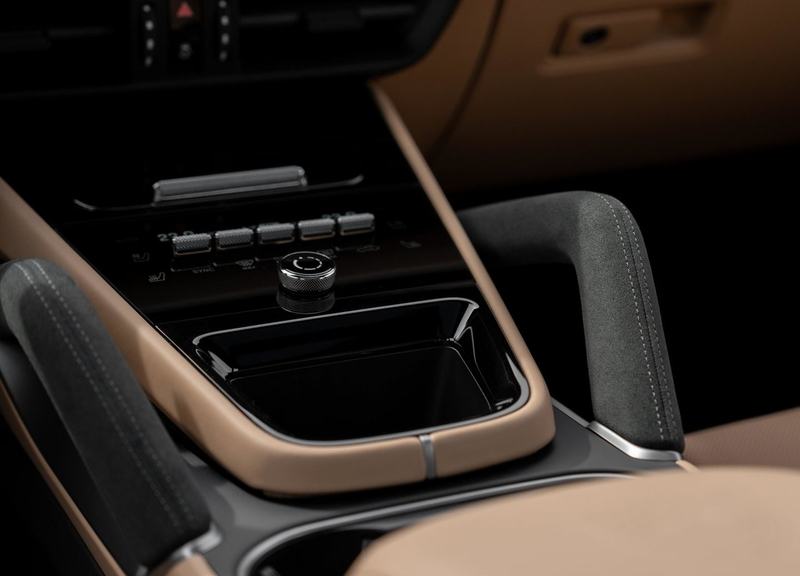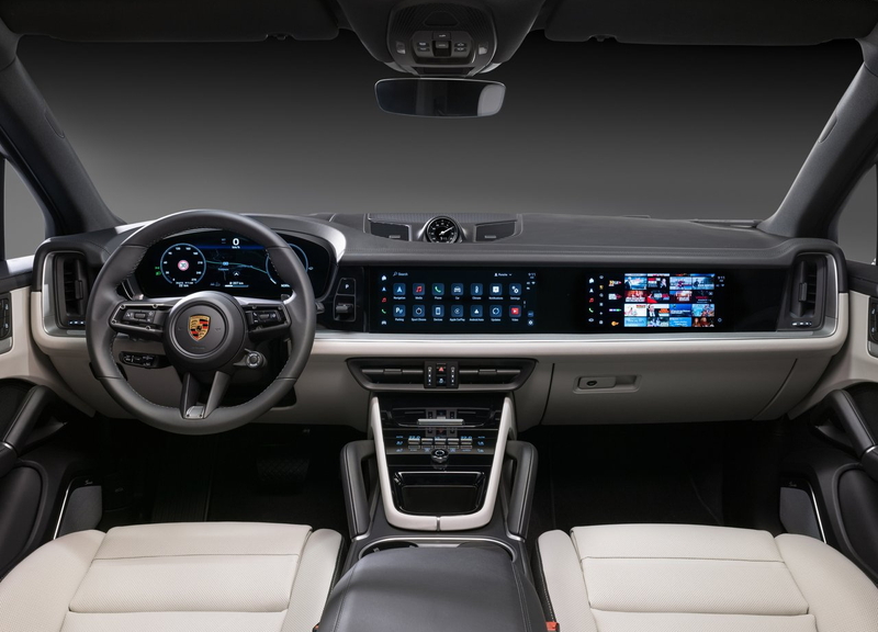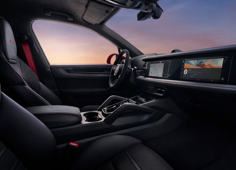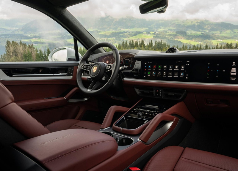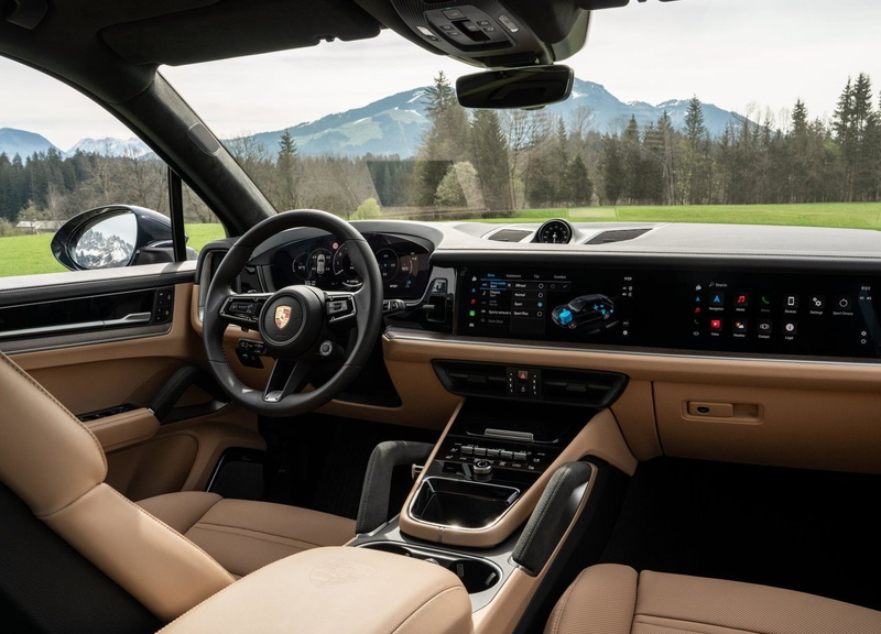 内装素材はポルシェらしく上質で、標準のレザーに加え、ウッド、アルミニウム、カーボン、レザー×アルカンターラなど多彩な仕上げが選べます。ステッチや細部の仕立ても非常に精密で、ラグジュアリーSUVとしての存在感を放ちます。また、オプションでアンビエントライトを装備でき、夜間は室内を落ち着いた雰囲気に演出します。