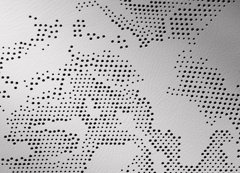 - レザーシートに0.8〜1.2mmの小さな穴を最大10万7千個配置。