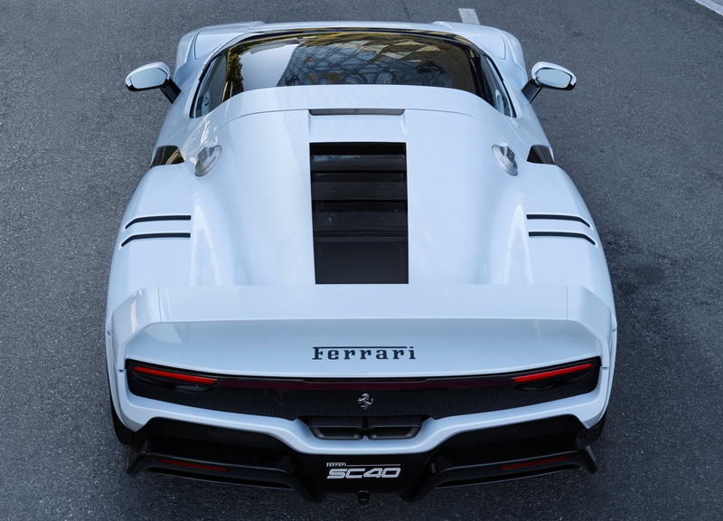 フェラーリ SC40のエクステリアには、性能とデザインを両立するための徹底した軽量化と空力最適化の工夫が盛り込まれています。