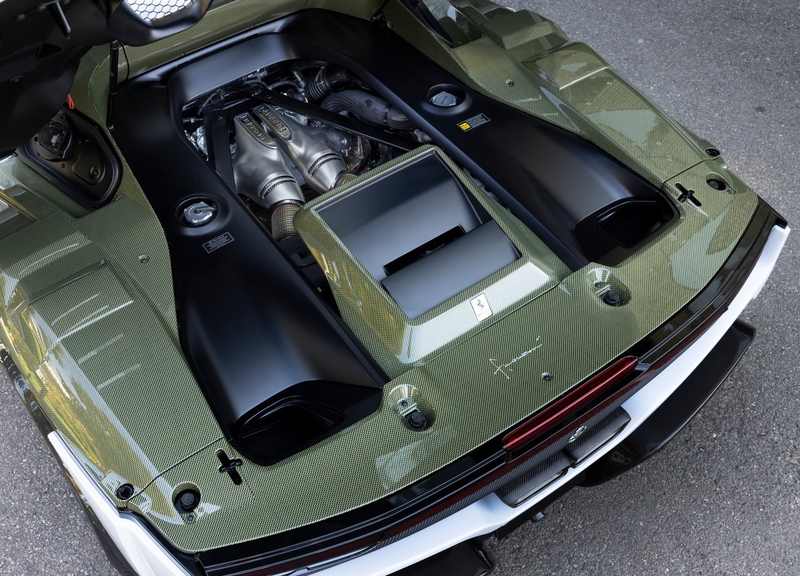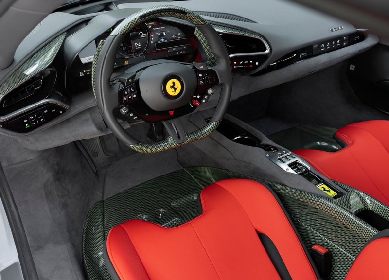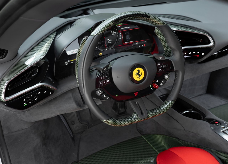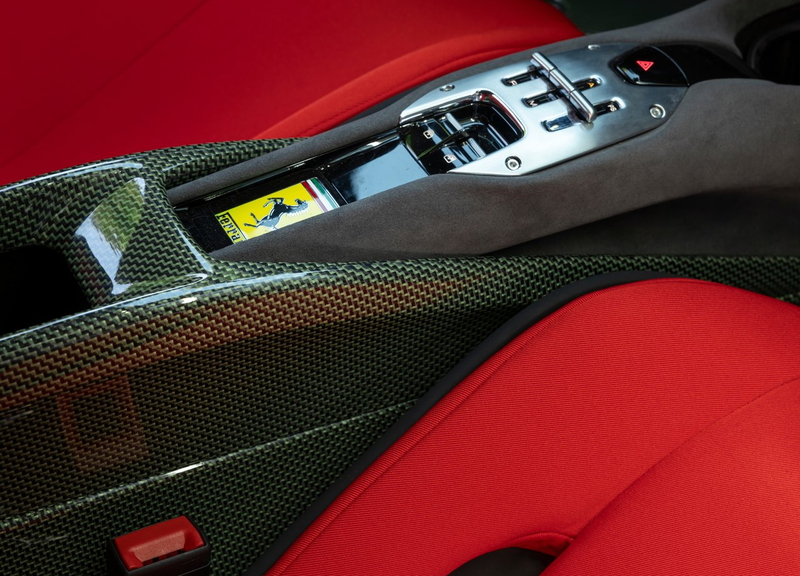 質感や素材、カラーリングまで、一般のフェラーリには設定されないワンオフ専用ディテールが多数採用されており、まさにオーナーだけが味わえる唯一の空間に仕上がっています。