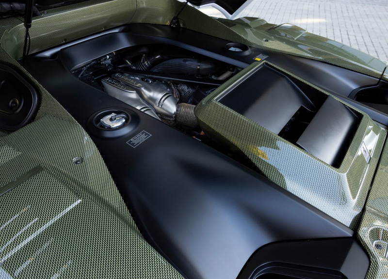 ボディはカーボンファイバーを中心に構成され、サイドのエアインテークやエンジンカバーにはLexan素材を採用。軽量化と空力性能を両立しつつ、スーパースポーツらしい“機能美”を強調しています。