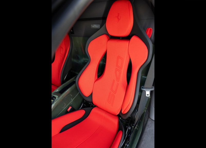 フェラーリ SC40のインテリアは、外観同様にF40のDNAと最新フェラーリのデザイン哲学を融合させた特別仕様となっています。
