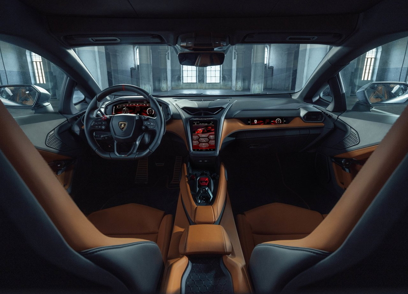 テメラリオのインテリアは、ランボルギーニならではの戦闘機コックピットを思わせるデザインをさらに進化させたもの。ドライバー中心のレイアウトに、最新のデジタル技術と軽量素材を融合し、“次世代スーパースポーツの室内空間”を体現しています。