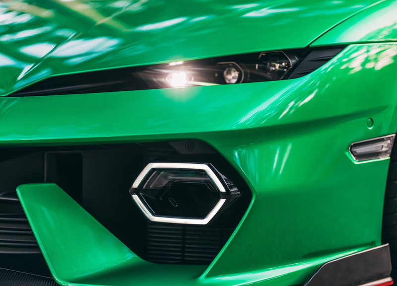 ランボルギーニ テメラリオのエクステリアは、これまでのブランドDNAを受け継ぎながらも、新世代モデルとして大きな進化を遂げています。特に象徴的なのが、ランボルギーニらしいシャープなシルエットと、六角形(ヘキサゴン)をモチーフにしたライトデザイン。従来多用されていた“Y字モチーフ”とは異なる、新しいアイデンティティを感じさせます。